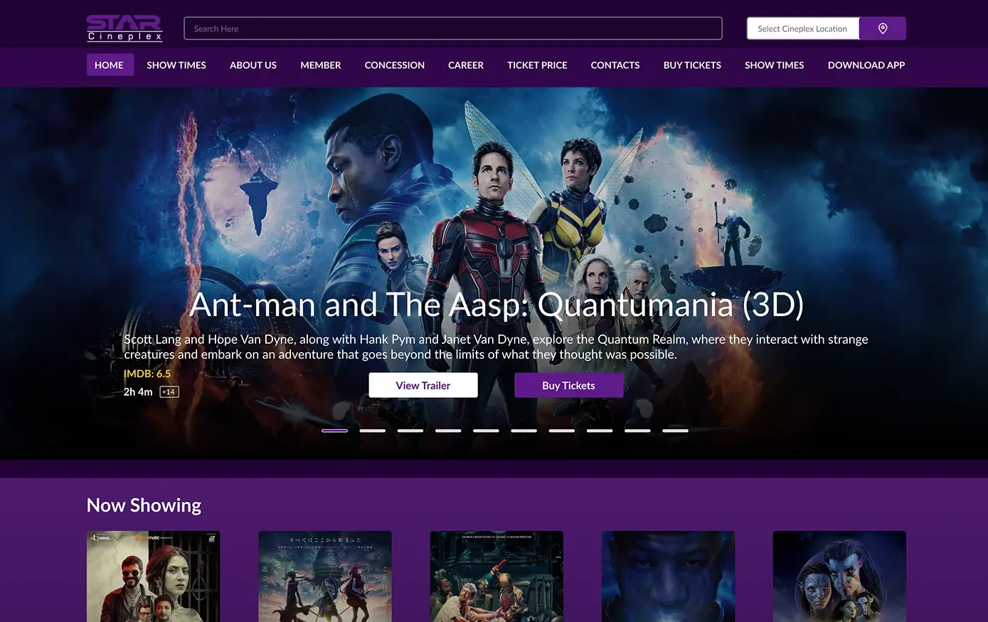 A modern Star Cineplex clone featuring movie listings, ticket booking simulation, and responsive UI.